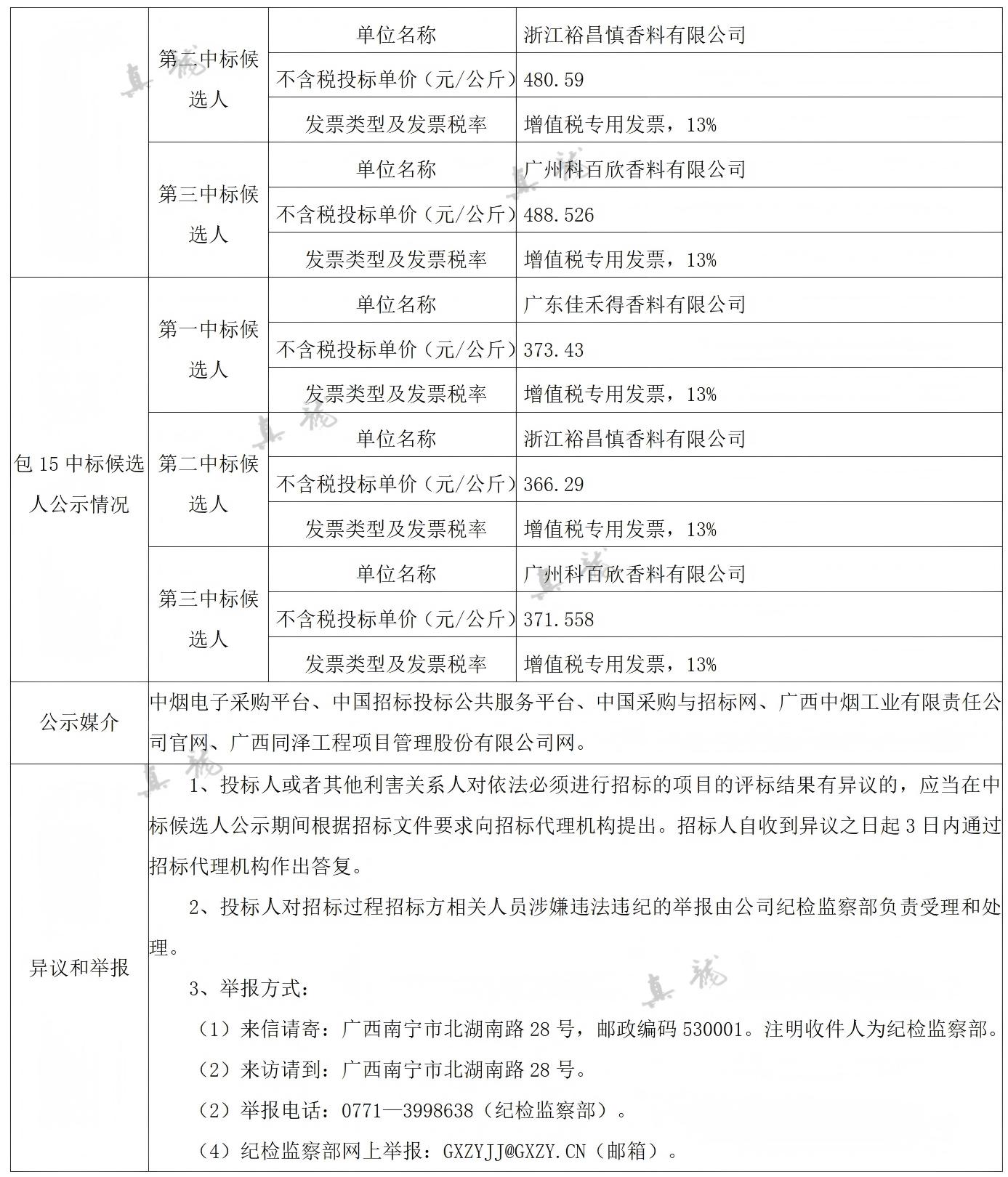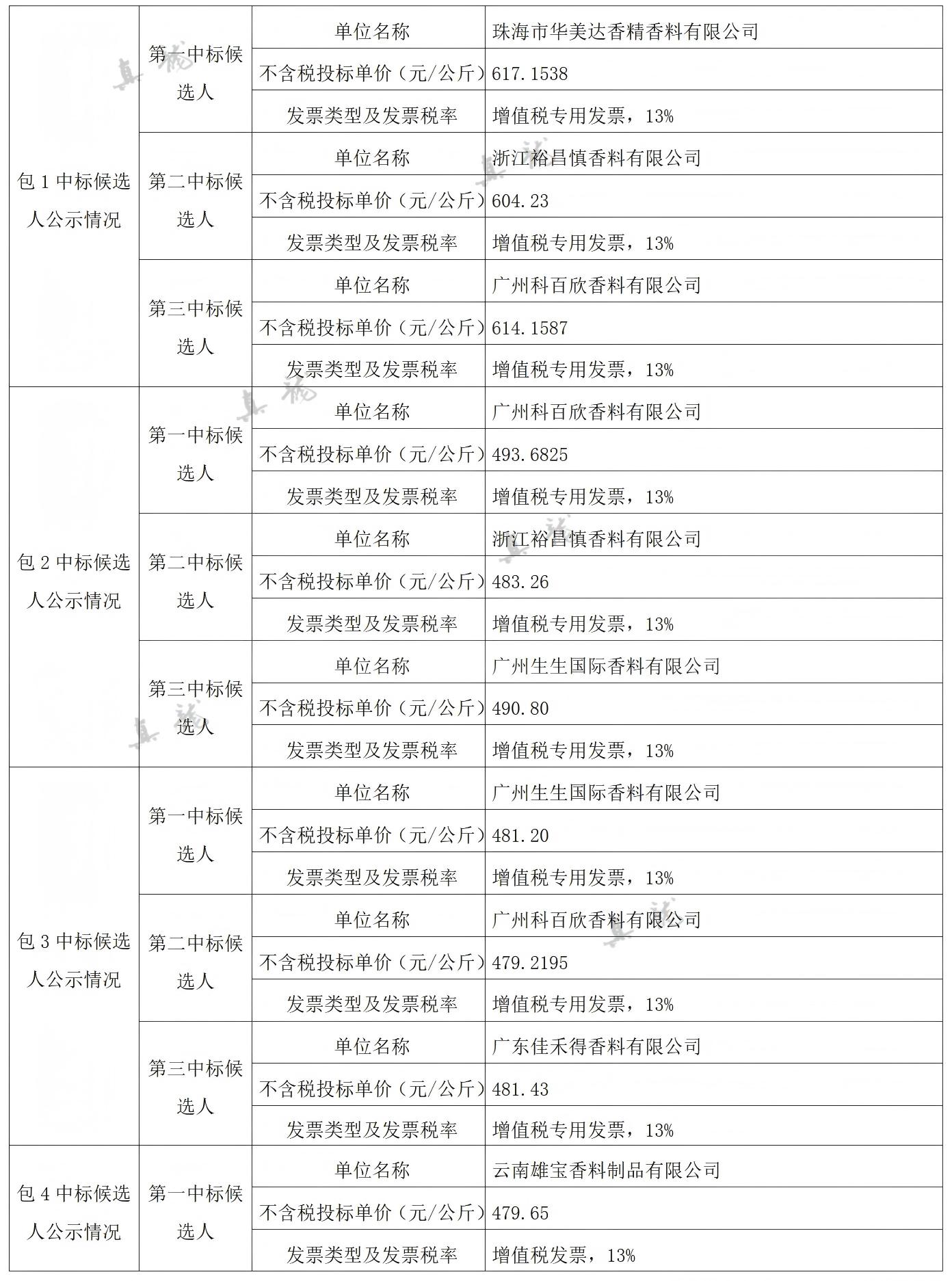 廣西中煙工業(yè)有限責任公司2026-2028年自主品牌香精香料采購之復合體采購第一批(項目編號:B202501BA2001767947560)中標候選人公示
